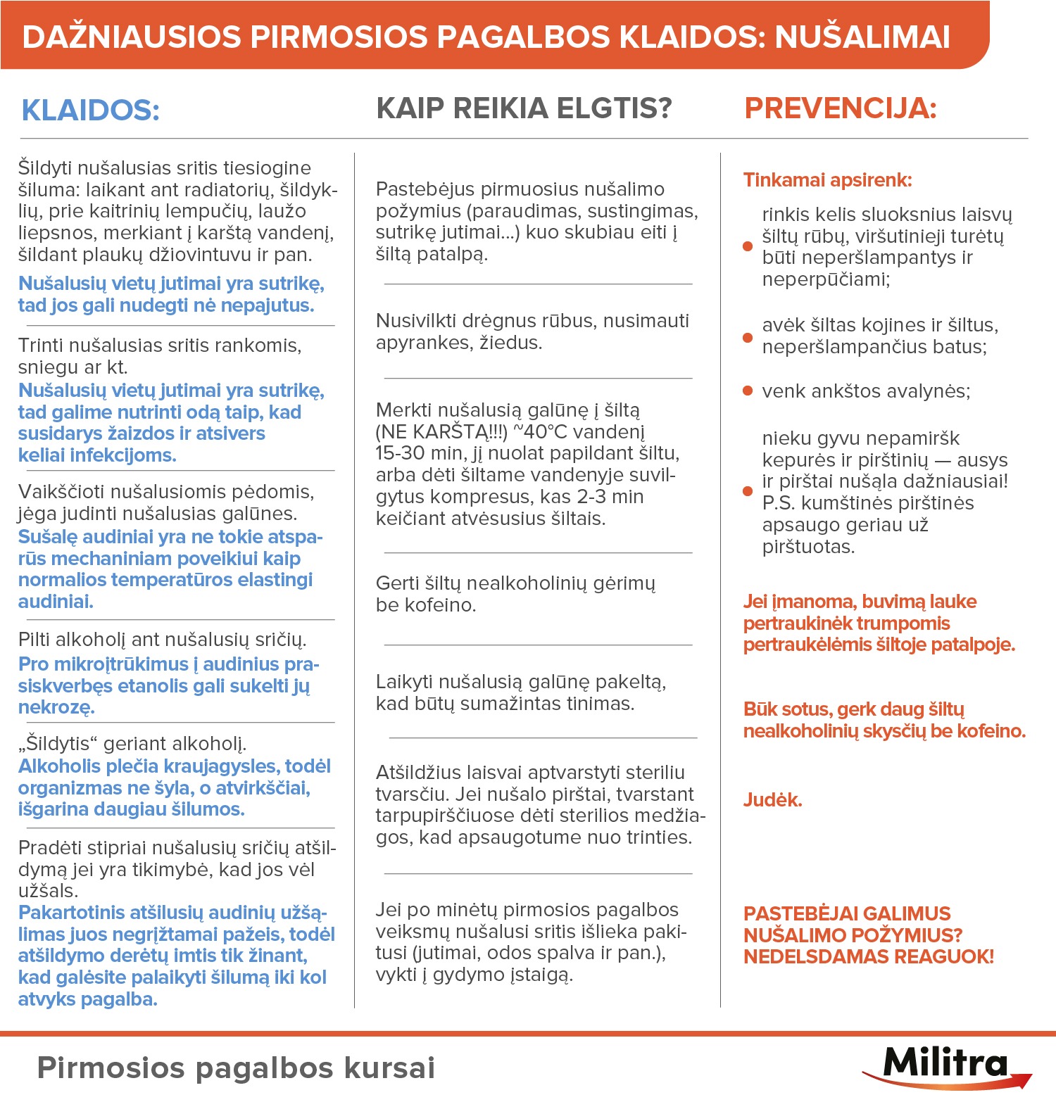 Kaip reiktų elgtis sušalus ar nušalimo atveju